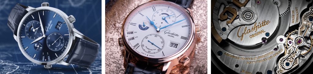 Il Senator Cosmopolite di Glashütte Original, per il suo decimo anniversario, presenta una cassa rivisitata sotto il profilo ergonomico, disponibile in oro bianco, oro rosa, acciaio, il diametro è di 44 mm, spessore 14 mm, w.r. a m.50; il movimento è il Calibro automatico complicato di Manifattura accuratamente rifinito.