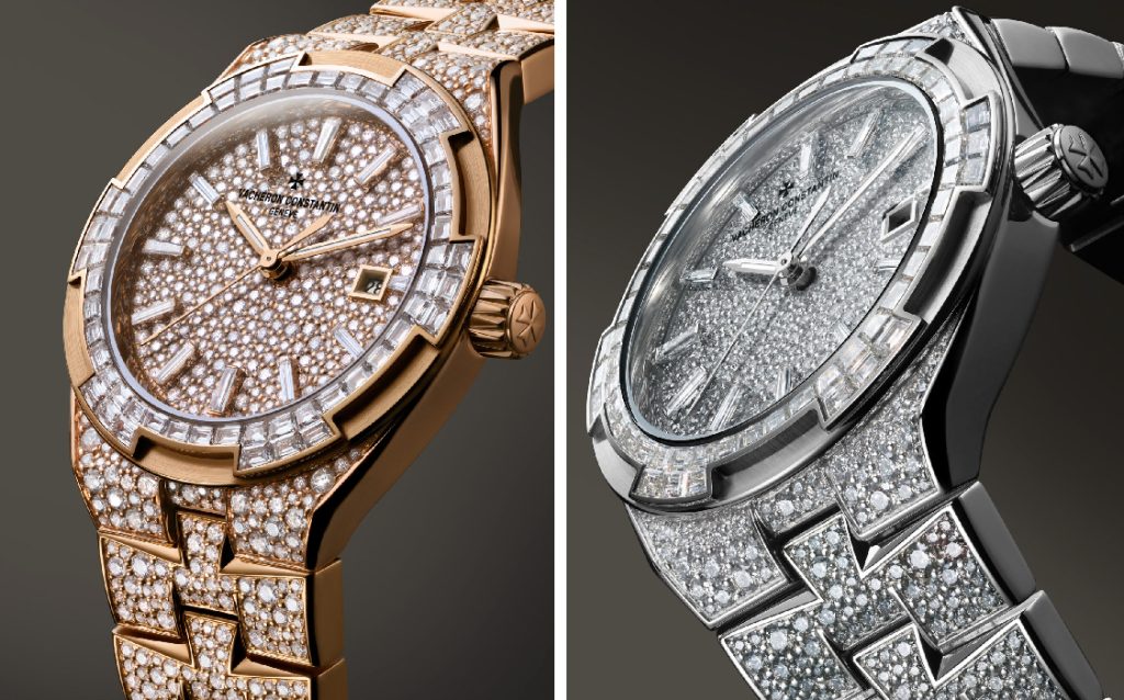 Nati come orologi sportivi gli Overseas di Vacheron Constantin sono diventati sempre più eleganti (con casse e bracciali in oro) sino al Top di questi due Overseas Alta Gioielleria, svelati nel Dicembre 2025, con diamanti taglio baguette incastonati sulla lunetta esagonale ispirata alla Croce di Malta e altri a neve sulla cassa, sul quadrante e persino sul bracciale.
