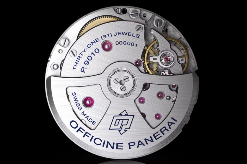 La cassa ø 44 mm in acciaio inossidabile è w.r. a m.300; lunetta e fondello sono anch’essi in acciaio inossidabile, la corona è protetta. Sul fondo chiuso l’incisione “Limited Edition” e il numero di serie. Il movimento è il Calibro automatico P.9010, spessore 6 mm, A/h 28.800, rubini 31, bilanciere in Glucydur® e dispositivo anti-shock Incabloc®. I due bariletti consentono una carica di 3 giorni; la massa oscillante è bidirezionale. La regolazione della lancetta delle ore è indipendente da quella dei minuti facilitando il cambio di fuso orario. Sul quadrante nero protetto da cristallo di zaffiro, indici in cifre arabe luminescenti Super-LumiNova® verde come le lancette. I piccoli secondi sono indicati a ore nove; non c’è la data proprio per restare fedele ai primi orologi Panerai commissionati dalla Marina Militare. Il cinturino in vitello è marrone scuro con fibbia trapezoidale in acciaio inossidabile è c’è un cinturino aggiuntivo in caucciù nero. Speciale infine anche la confezione in legno.