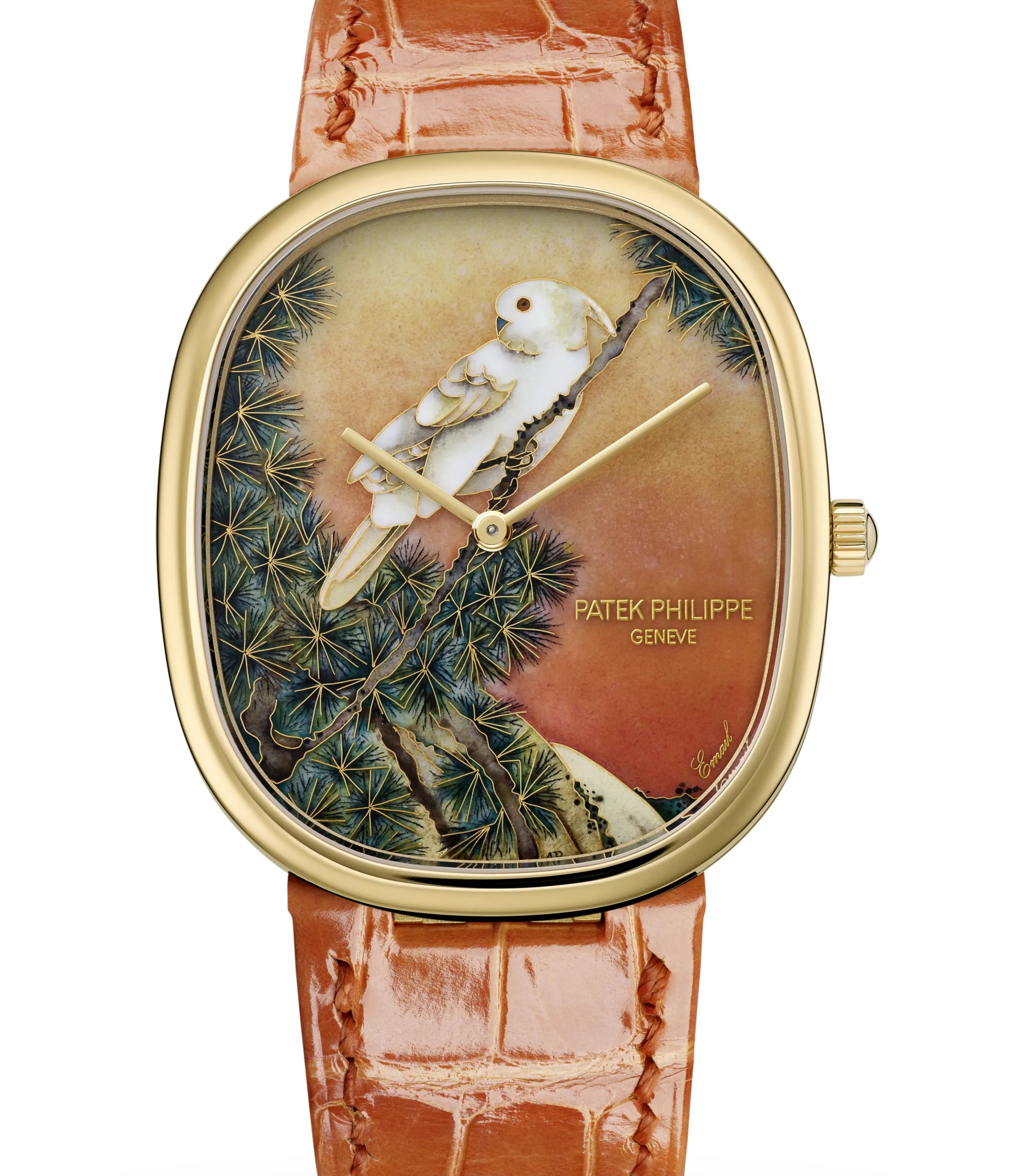 Dal 5 al 7 Aprile la rassegna nel Salone della Maison ginevrina accoglierà 78 rari esemplari di cui 23 pendolette e mini-pendolette Dôme, 1 pendoletta da tavolo, 10 orologi da tasca e 44 orologi da polso Calatrava e Golden Ellipse, illustrando nuovamente l’ampia gamma del savoir-faire della Manifattura: dalle tecniche antiche come lo smalto Grand Feu cloisonné, la pittura miniata su smalto, lo smalto grisaglia, lo smalto flinqué, lo smalto paillonné, lo smalto champlevé, l’incisione a mano, il guilloché a mano o l’incastonatura, a diverse tecniche innovative in orologeria, come gli smalti di Longwy su porcellana e il micro-intarsio in legno. Nell’ambito dell’evento sono previste anche dimostrazioni degli artigiani incisori e smaltatori. Nel salone che si affaccia sul lago saranno raggruppati gli esemplari che celebrano le bellezze della natura (flora, fauna, Provenza, Amazzonia) tra i quali risalta la galleria di ritratti di uccelli, come l’orologio da polso Golden Ellipse Ref. 5738/50J-011 “Cacatoès à huppe jaune” (Cacatua crestagialla), con quadrante in smalto cloisonné impreziosito dalla pittura miniata su smalto.