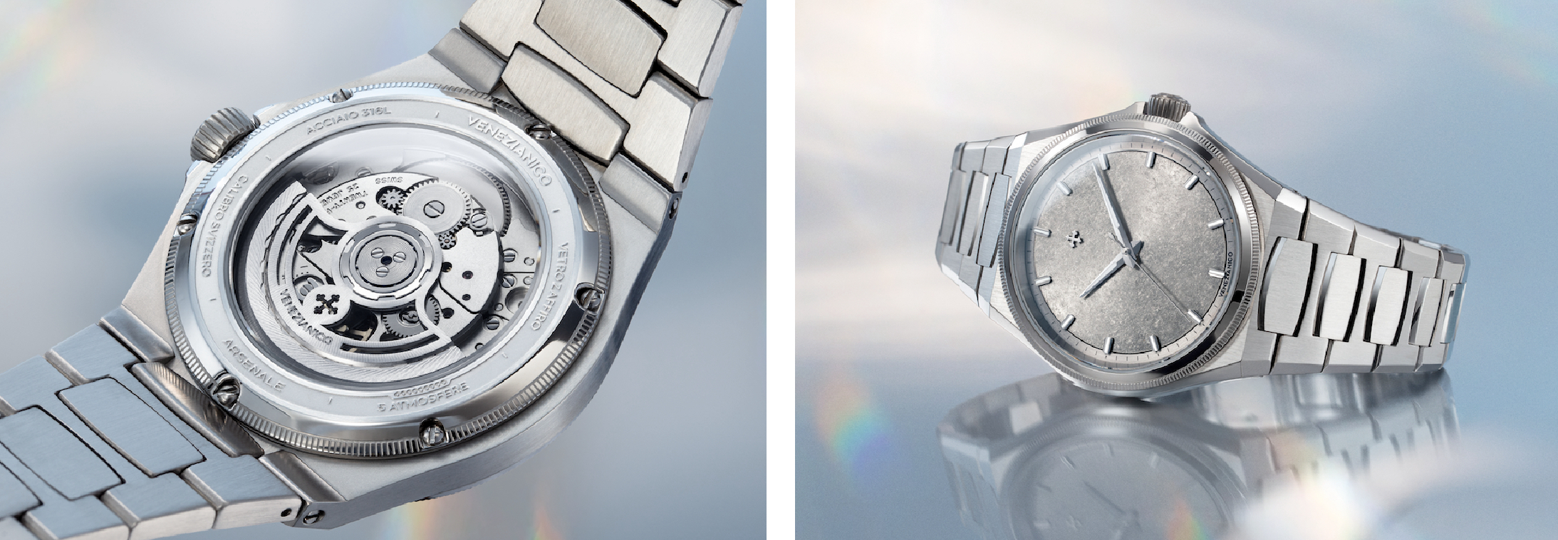 New Arsenale by Venetianico, unweiled in 2025 June, has platinum case and authomatic mouvement.