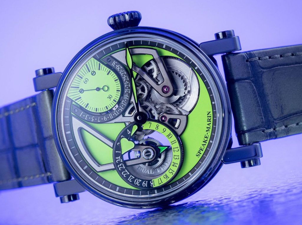 Vicino a Londra i campi da tennis con la superficie d’erba impegnano i migliori tennisti del mondo e proprio questo torneo ha ispirato nel 2025 il colore del nuovo Dual Time Wimbledon Spirit, realizzato da Speake Marin che ha scelto per il nuovo cinturino un verde lime; forse perché con questo caldo anche l’erba più verde perde il colore brillante.