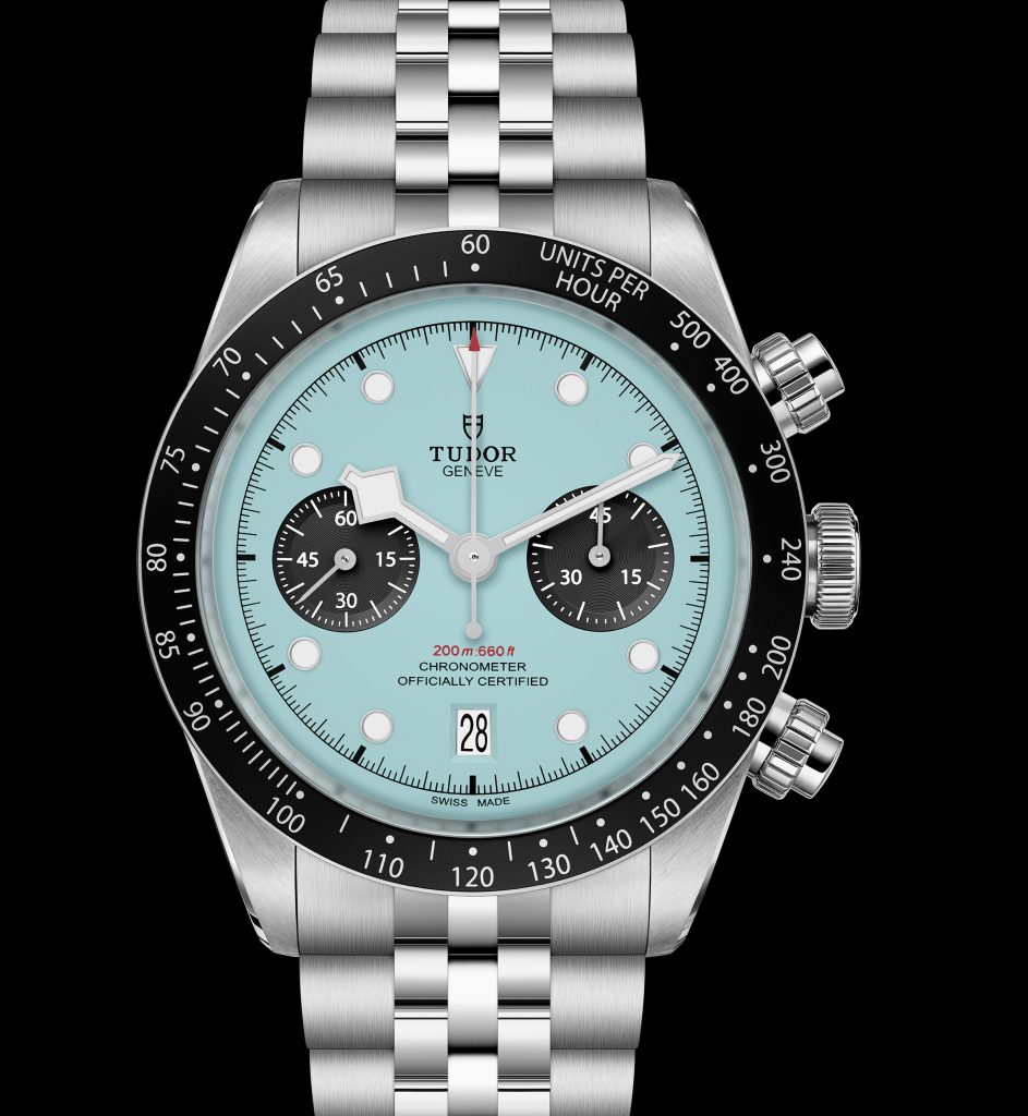 A new Black Bay Chrono, after the one with rose dial, has been unweiled in January 2025 with a pale blue dial while all others tecnical data don’t change.
