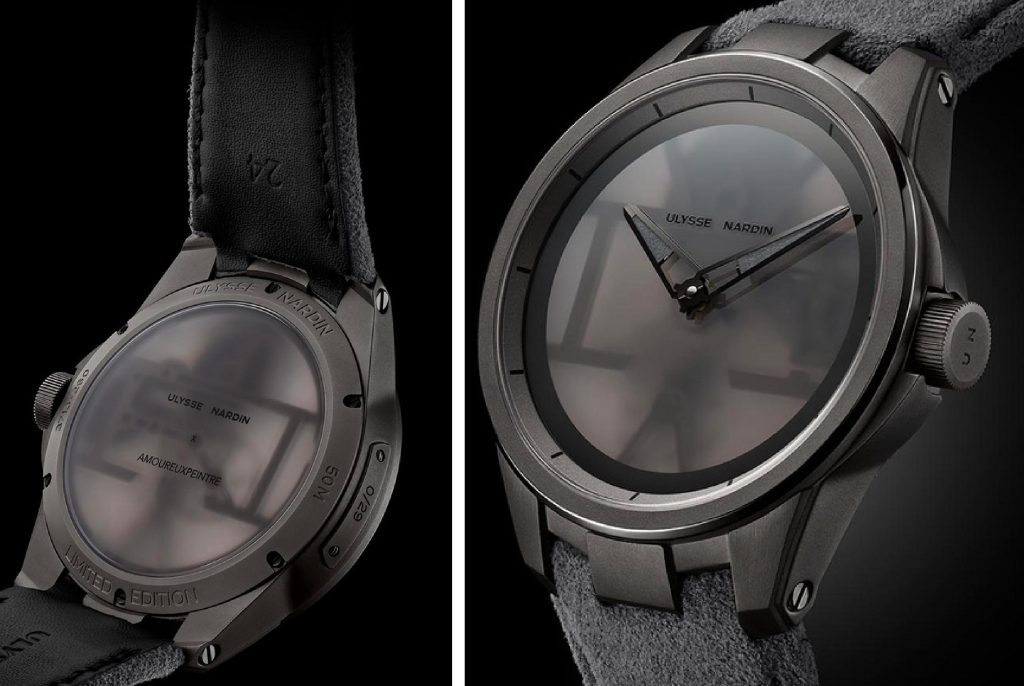 January 2025: a new watch in limited edition unweiled by Ulysse Nardin in partnership with Peintre Amoureux: titanium case ø42 mm and a special dial.