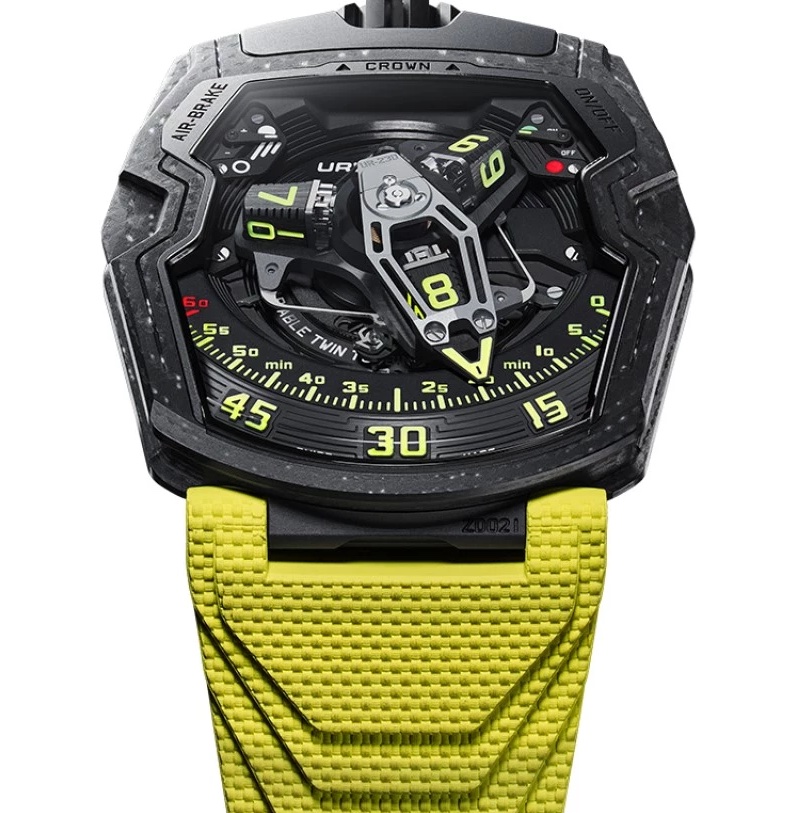 Il cinturino giallo in caucciù vulcanizzato ha la chiusura in velcro. Come detto in apertura questo orologio è realizzato in soli 35 esemplari. Il prezzo richiesto (senza contare le tasse 150.000 CHF) ne fa un oggetto per facoltosi collezionisti.