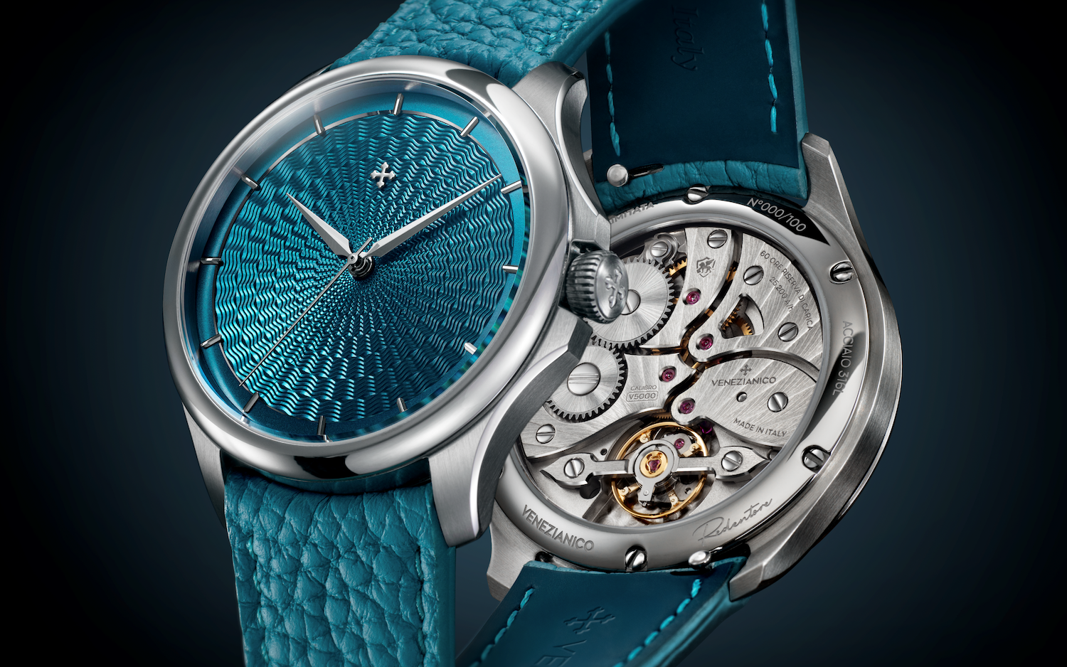 Il Redentore Utopìa di Venezianico, da questo mese, accoglie un movimento meccanico, il Calibro V5000 sviluppato e realizzato in Italia. All’esemplare dedicato a Venezia è stato aggiunto il termine”utopìa”, perché quando si iniziò a immaginarlo il risultato sembrava impossibile. Cento gli esemplari numerati.