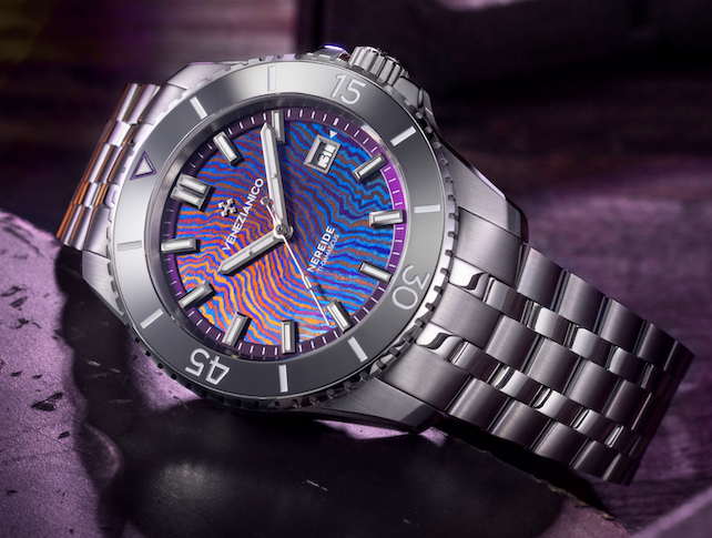 Nereide Ti Damascus unveiled by Venezianico in a limited edition of 500 watches with steel case and Swiss made movement.