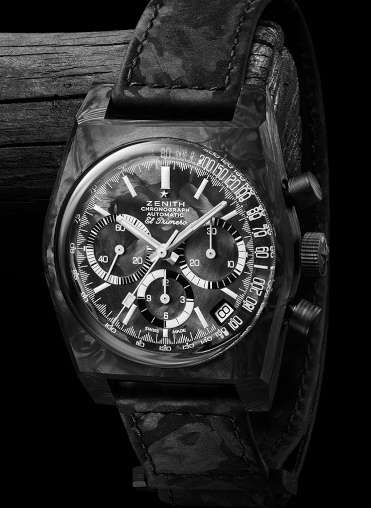 Per il ventesimo anniversario di Revolution è stato presentato il 7 Febbraio 2025 in tiratura limitata a 150 esemplari, lo Zenith Chronomaster Revival A3818 Cover Girl Carbon con cassa e quadrante in fibre di carbonio.