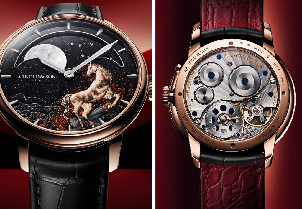 Another watch by Arnold&Son tribute to Chinese calendar as 2026 is the year of horse. With red gold case and painted dial (horse is mad with gold), movement hand wounded is Swiss Caliber A&S1512.