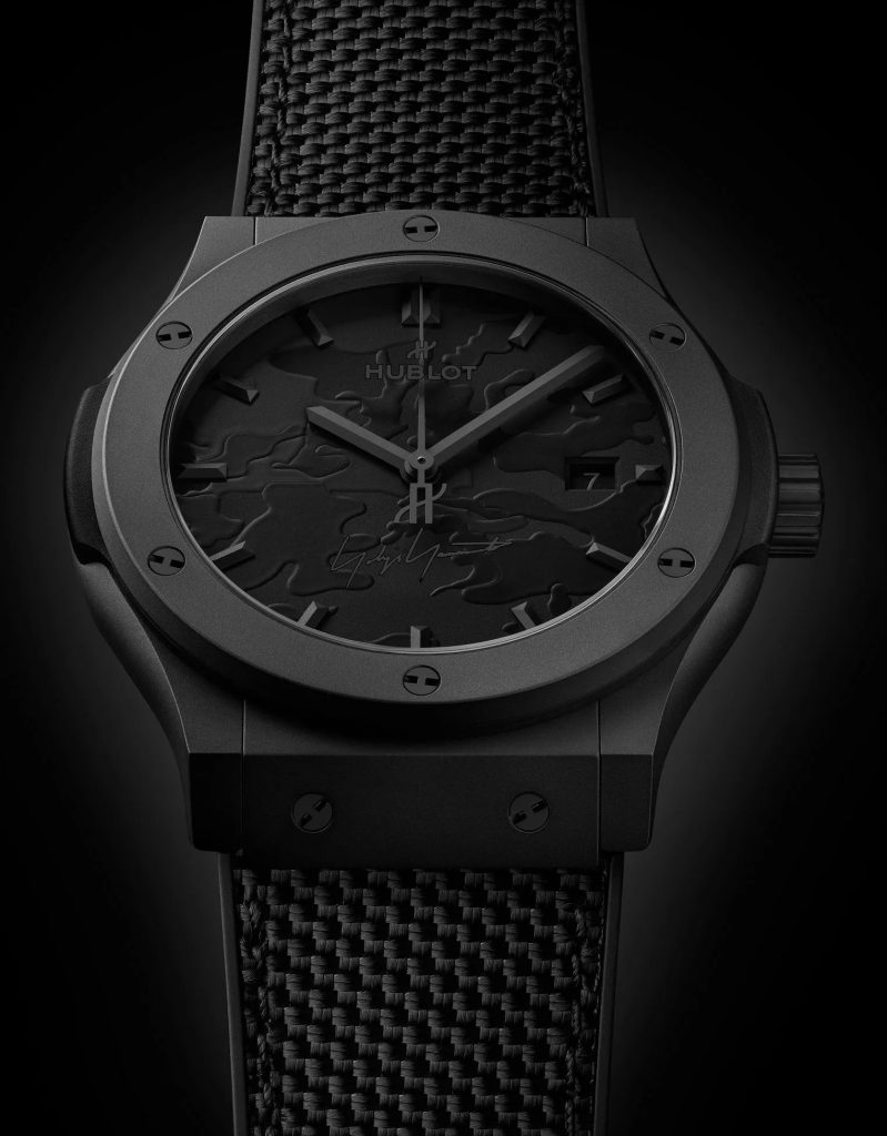 Yohji Yamamoto, stilista giapponese nato a Tokyo ne 1943, ha creato un suo Marchio che comprende l’universo del Fashion inclusi gli accessori (e in questo campo rientrano gli orologi). La sua prima collaborazione con Hublot risale al 2020 e oggi la quarta partnership si basa su un colore; lo stilista infatti ha messo in risalto come il nero profondo unito a volute tonalità contrastanti sia il colore adatto per il nuovo Classic Fusion All Black Camo, la cui tiratura è stata fissata in 300 esemplari.