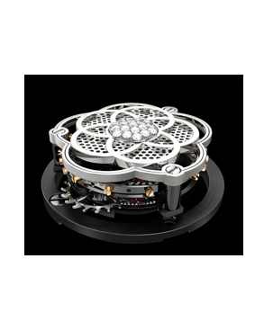 Questa la scheda di un automatico che vede alle sue spalle l’ingegno sbrigliato di Vincent Calabrese, napoletano “prestato alla Svizzera” che, dopo essere stato un indipendente, ha lavorato da Blancpain, tornando ad essere libero professionsta. Il bilanciere è al centro della gabbia la cui velocita di rotazione è controllata da un sistema esclusivo. I componenti sono 262, i rubini 36, il bilanciere è a vite e la spirale piatta, 21.600 le A/h. A ore 10 sotto l’ansa, premendo un pulsante, si regola la data (brevetto della Maison). Sul quadrante si vede la componentistica; alle 12 da una grande finestrella si ammira la gabbia del Carrousel che indica anche i secondi; alle 6 la riserva di carica (100 ore) con i segni <+> e <->; alle 9 la data indicata da una doppia lancetta. La cassa in platino ha un ø di mm 43,5 ed è in platino anche la fibbia deployante, la corona è personalizzata.