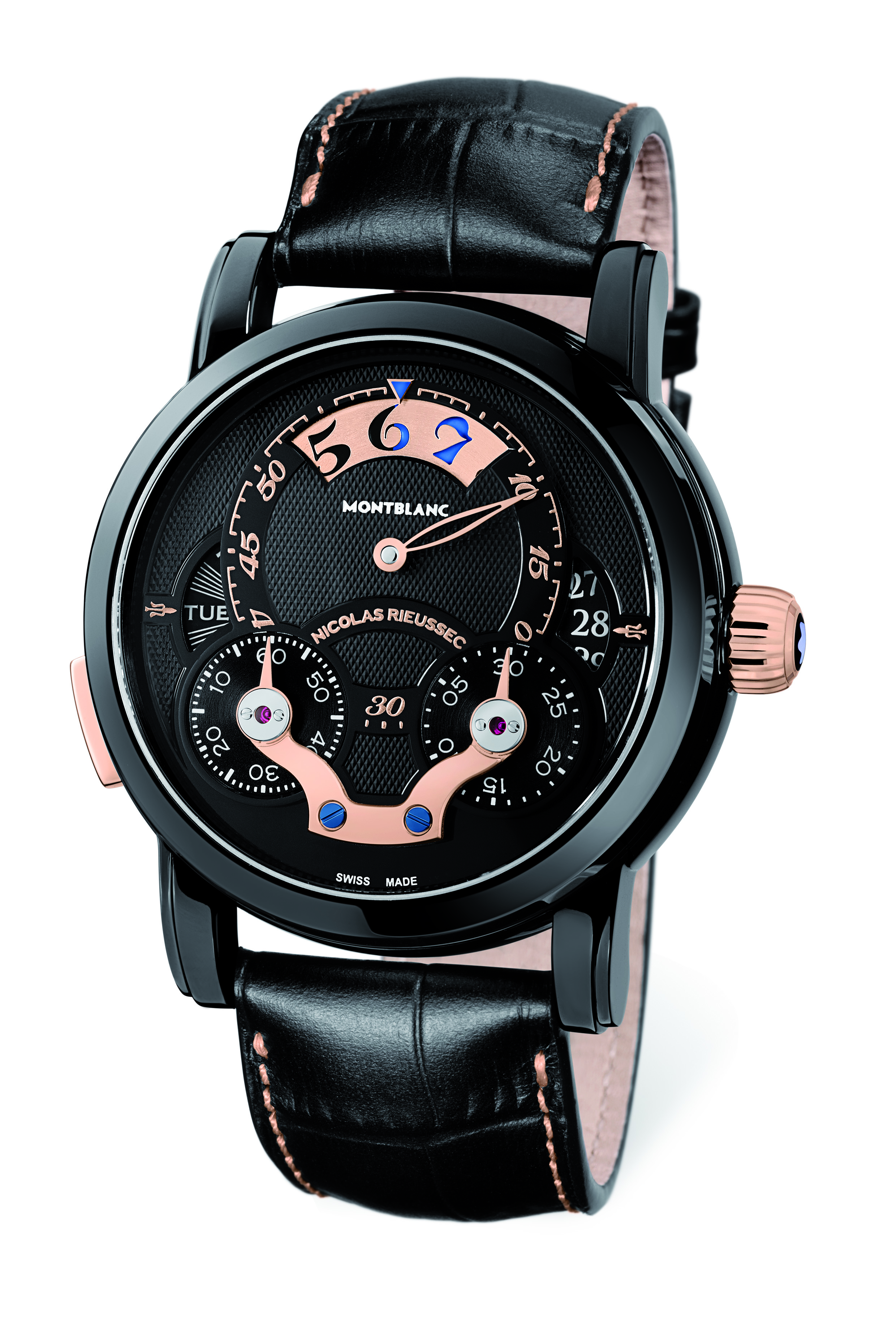 Per l’Asta Only Watch a Montecarlo era facile pensare che Montblanc avrebbe scelto un segnatempo della collezione dedicata all’indimenticabile principessa Grace, invece nulla di tutto ciò. Il segnatempo ideato per sostenere la ricerca medica contro la distrofia muscolare è quanto di più tecnico e maschile si possa pensare. Infatti è un esemplare unico del Nicola Rieussec Rising Hours dedicato a Monaco con un colore nero profondo illuminato da bagliori di oro rosso.