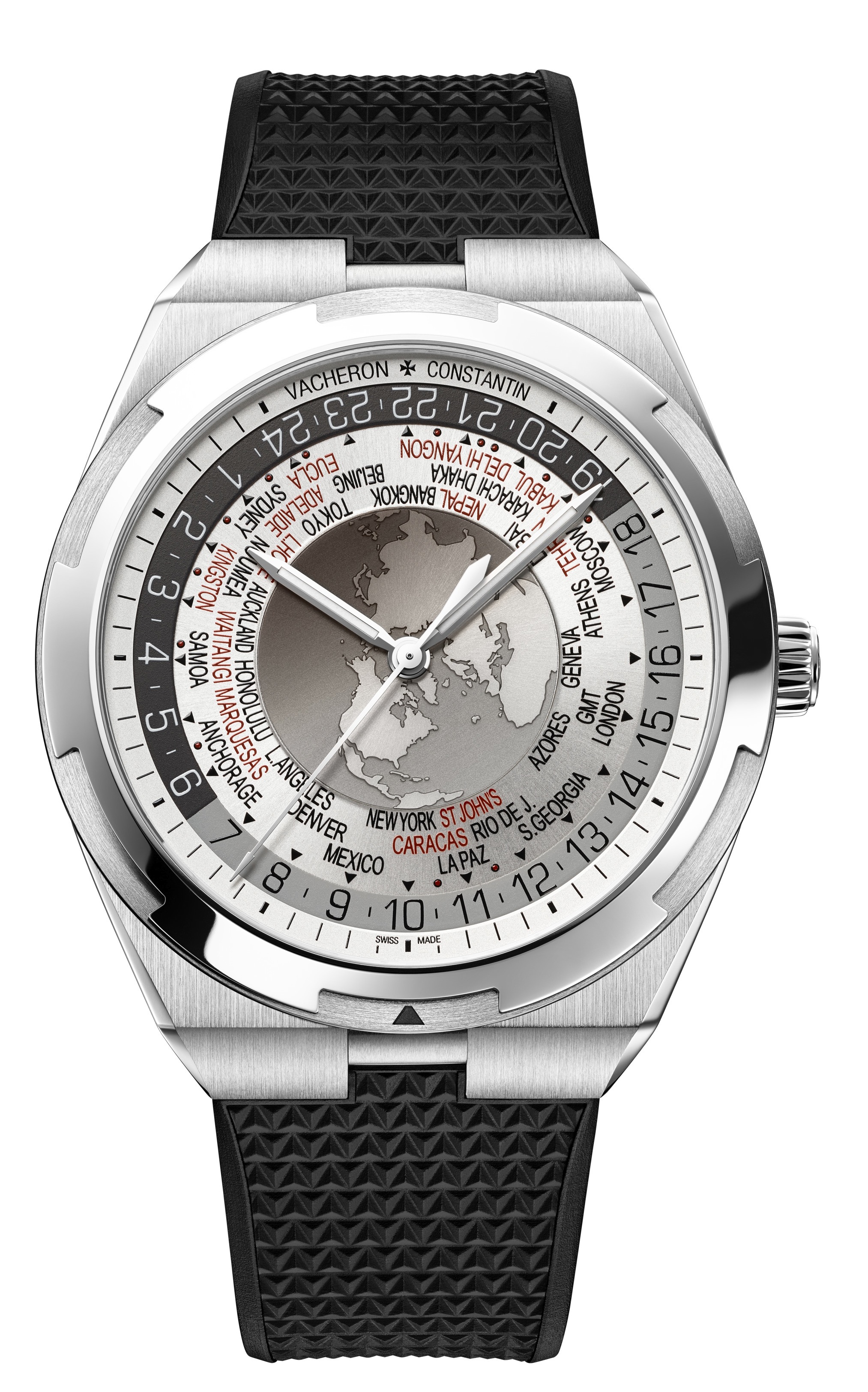 « World Time Overseas cadran gris7700V-110A-B129bracelet caoutchouc